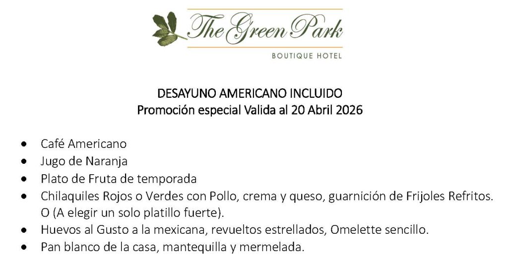 Al poniente de la magnífica Ciudad de México y justo frente al bosque de Chapultepec el parque urbano más grande de América Latina—surge The Green Park hotel, el concepto hotel boutique donde la opulencia y el carácter al más puro estilo inglés tradicional, se reúnen con la complacencia de la acogedora y cálida atención mexicana que se esmera en cada detalle.
